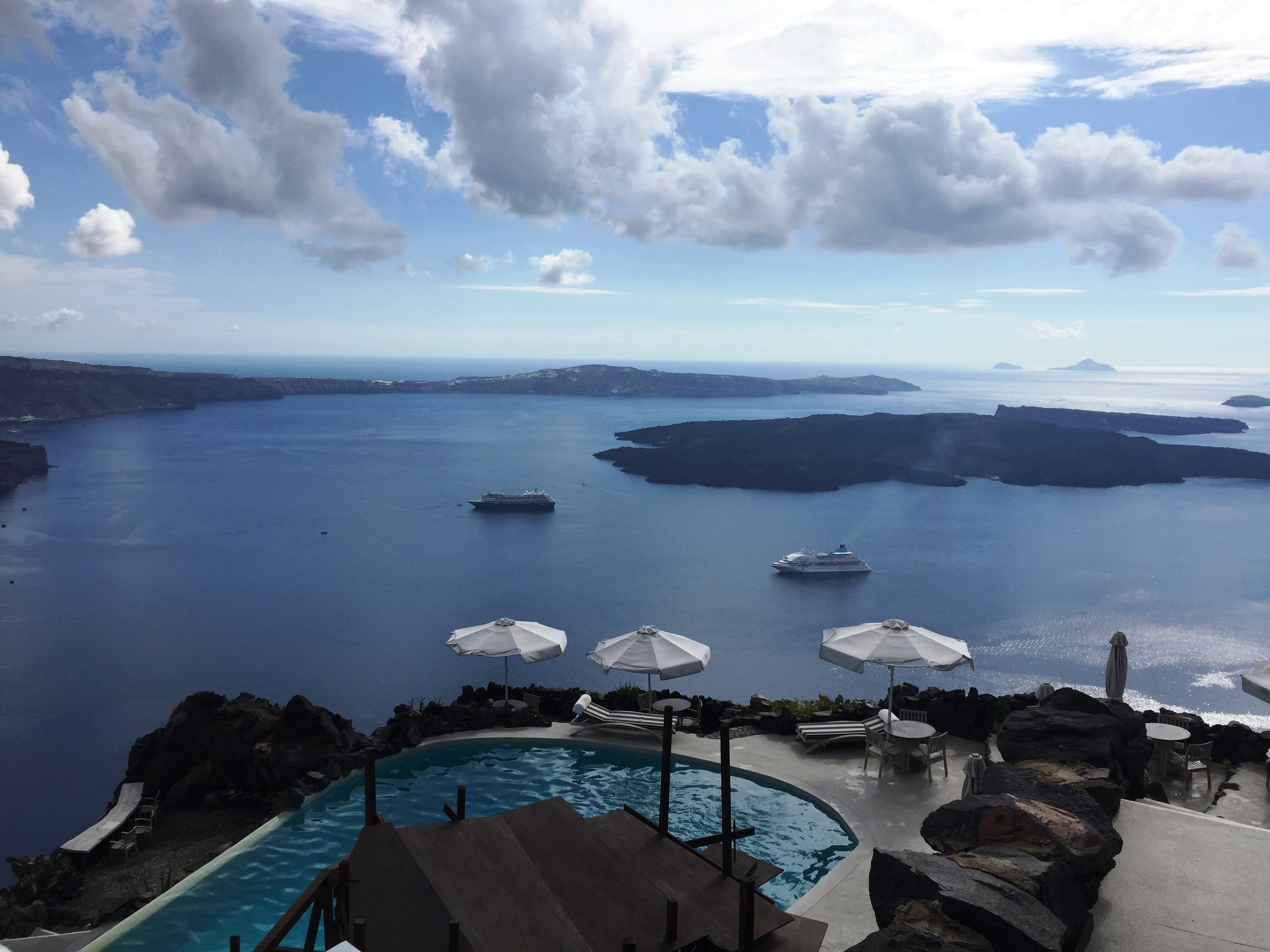 After some lunch in a local café we had spotted, we plotted up on the comfy sun loungers around the pool for a couple of hours. From this point I could look out and see Oia on one side and Thira on the other. Then directly in front there was the sea, volcano and island of Thirasia. I am conscious that I am writing a lot about the views in santorini but it is for good reason. They are quite simply breathtaking.
