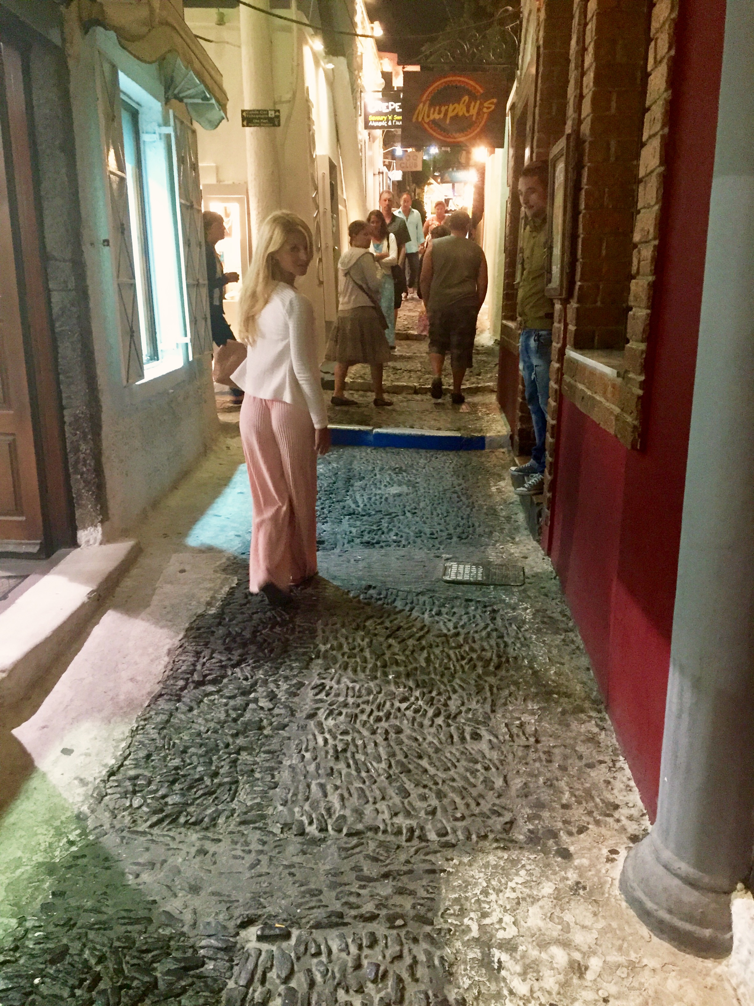 The walk from Imerovigli to Thira takes approximately 20 minutes along an uneven path. It is mostly downhill, so leave yourself a bit of extra time for the walk back as you may want to stop for a couple of rests on the way home. We wandered around the pretty cobbled streets of souvenir shops and boutiques for a couple of hours before taking a ride on the cable car and seeing the famous Santorini donkeys. The donkeys do appear to be well looked after but I can’t help feeling a little sad for them having to work in the heat and carry tourists and goods up and down the mountain. There are many opportunities to book boat tours from here which take you to the volcano and smaller islands of Santorini. If I had spent longer here I would have definitely booked on to one of these trips.