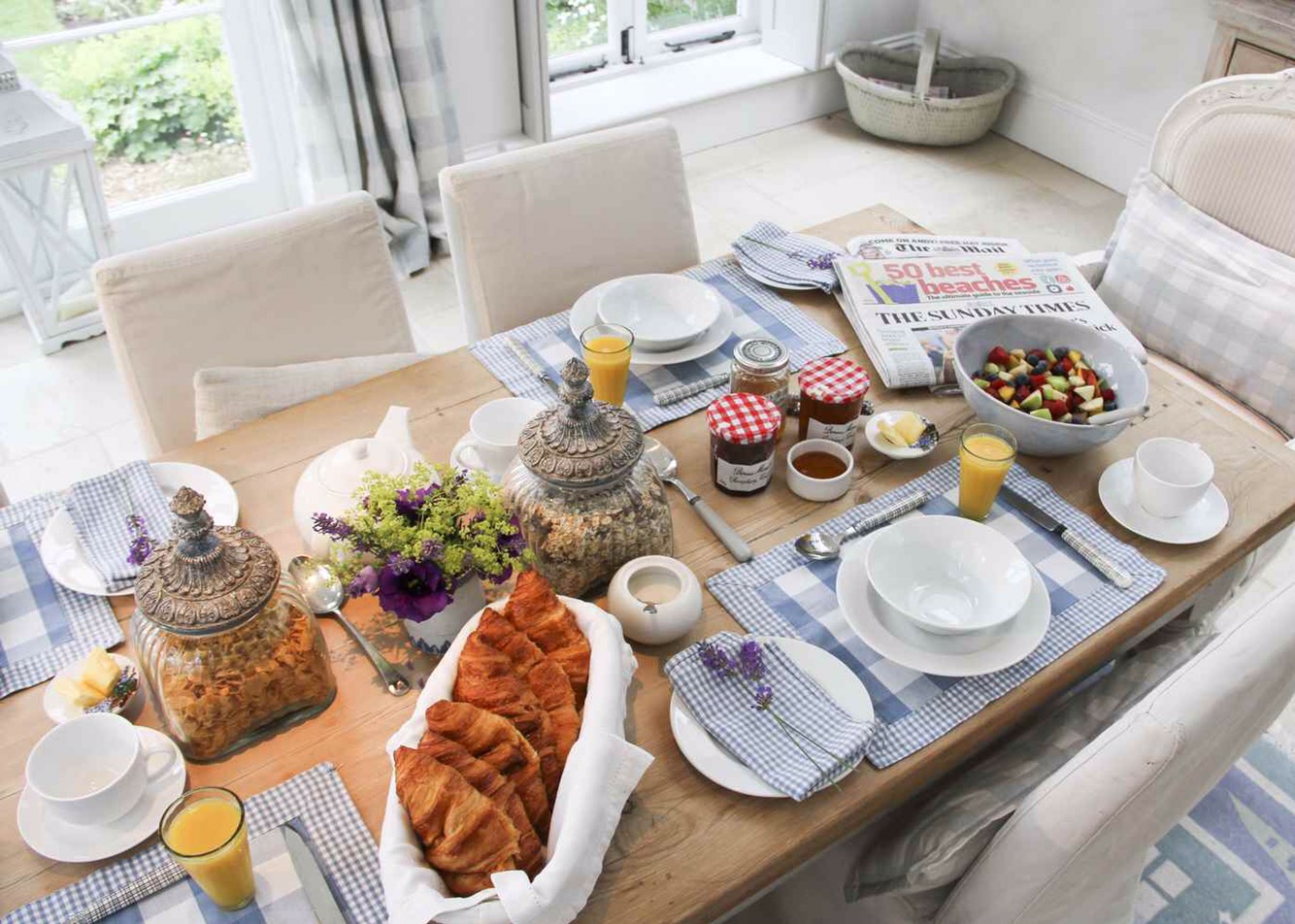 We had asked for breakfast to be ready for 9am the next morning. And after waking and a quick shower I went down to the open plan grey painted kitchen for a lovely breakfast spread of orange juice, tea or coffee, fresh fruit, yoghurt, cereals, pastries, freshly baked bread and preserves.